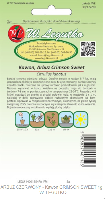 Nasiona Arbuz Crimson Sweet, 1g
