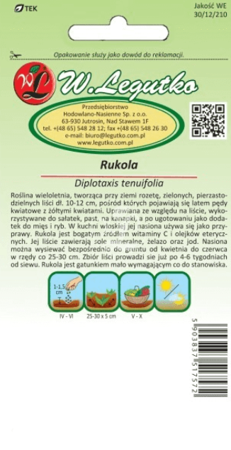 Rukola jest bogatym źródłem witaminy C i olejków eterycznych. Ponadto jej liście zawierają sole mineralne, żelazo oraz jod. wykorzystywana do sałatek oraz past, na kanapki, a po ugotowaniu jako dodatek do mięs i ryb . W kuchni włoskiej nasiona rośliny używane są również jako przyprawa.