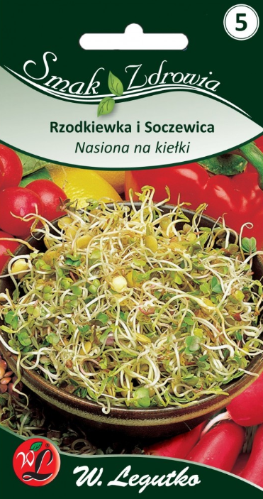 Dobrana przez nas w odpowiedniej proporcji mieszanka nasion rzodkiewki i soczewicy, tak aby ostry smak kiełków rzodkiewki równoważony był łagodnym smakiem kiełków soczewicy. Kiełki te poza walorami smakowymi charakteryzują się wysoką zawartością witamin i soli mineralnych.