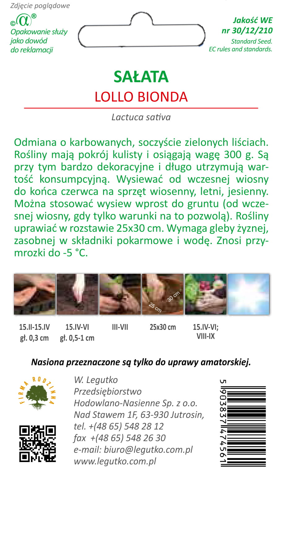 Nasiona Sałata Lollo Bionda, zielona, fryzowana 1g